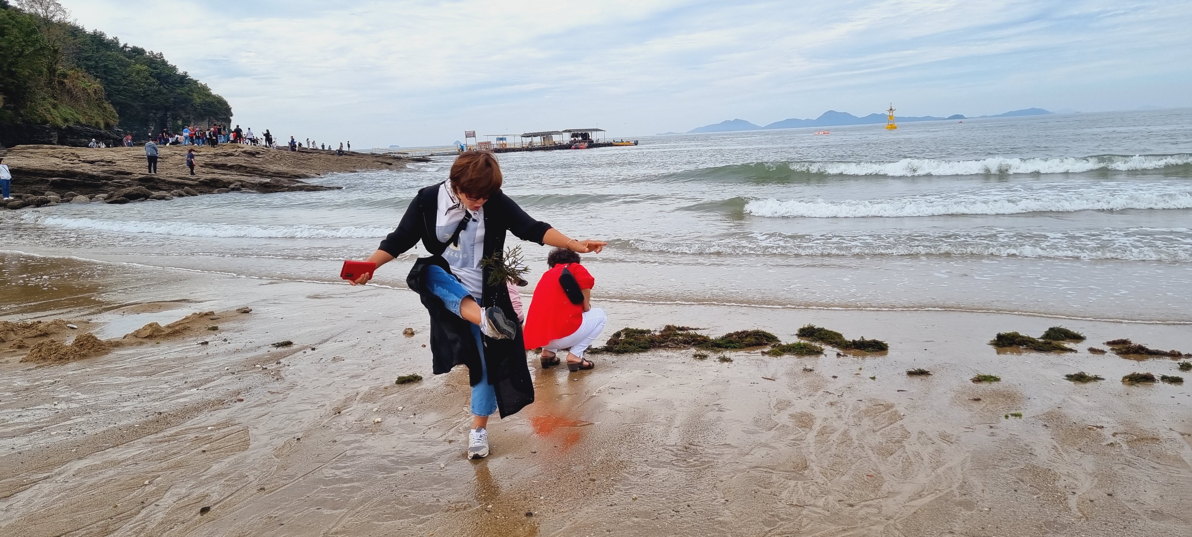 해초를 주워 재기도 차고...